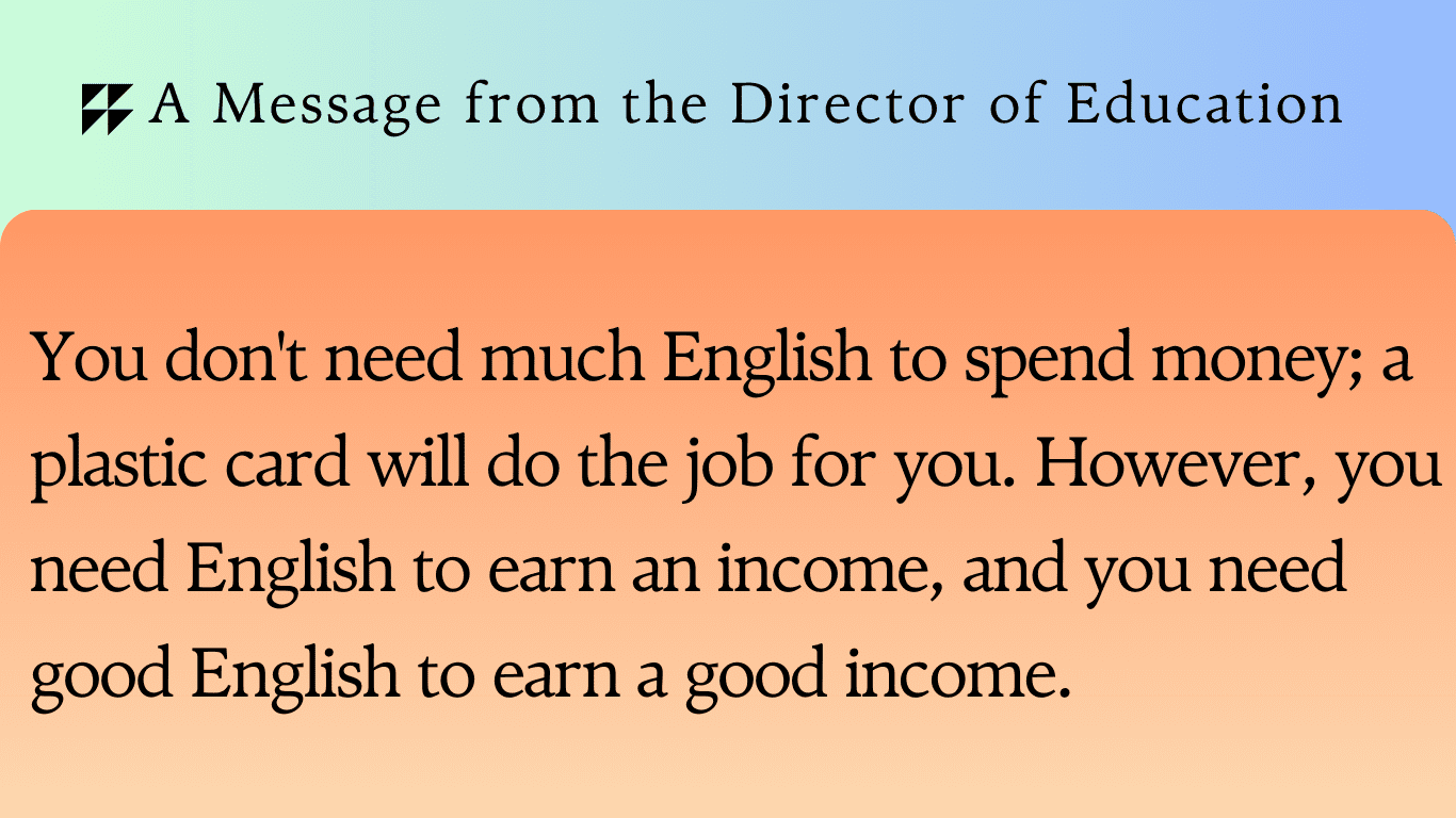 You may not need much English to spend money. However, you need English to earn money, and you need good English to earn good money.